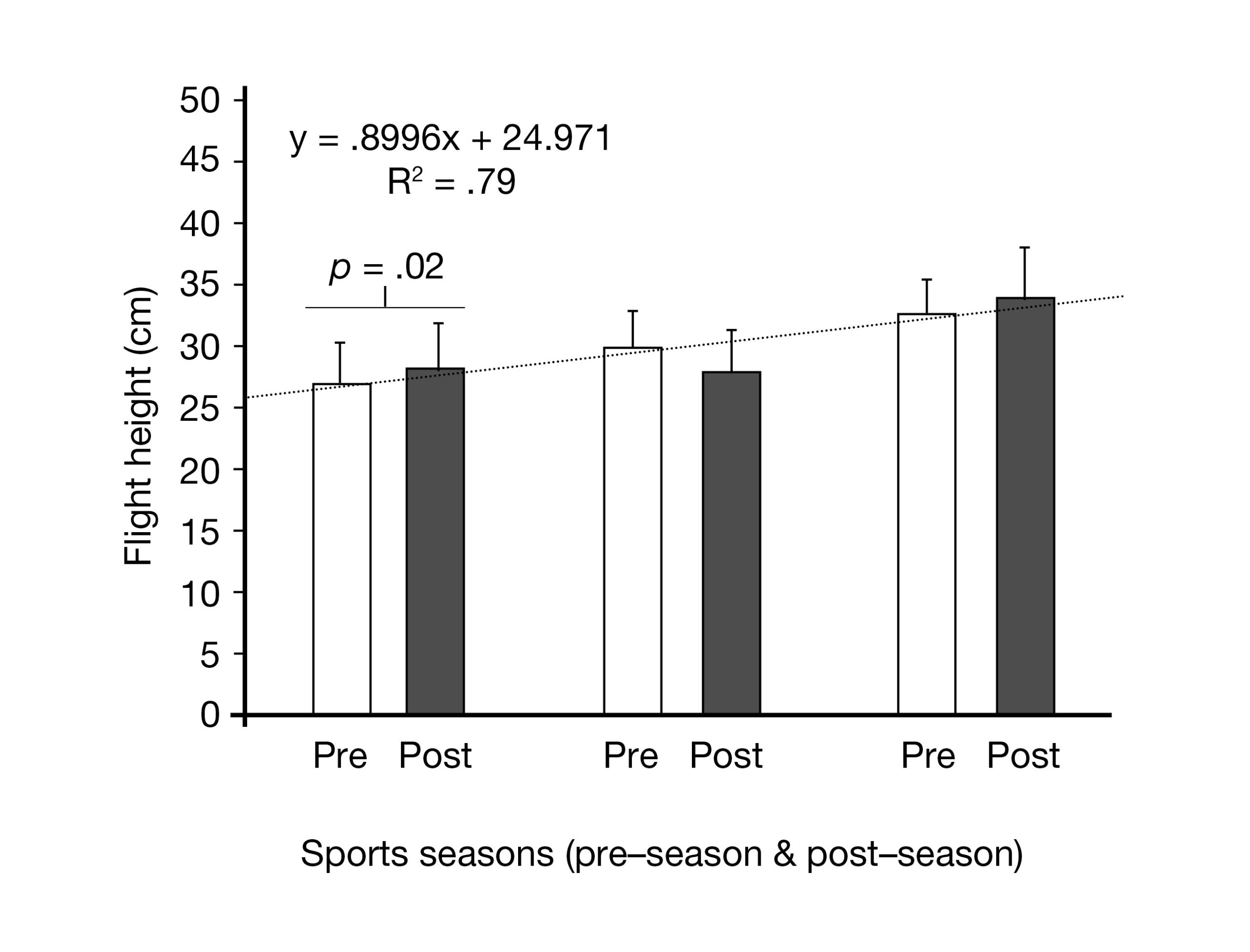 Table 3 shows the comparison between seasons of all the variables analysed, in this case based on the best values recorded in each test.
