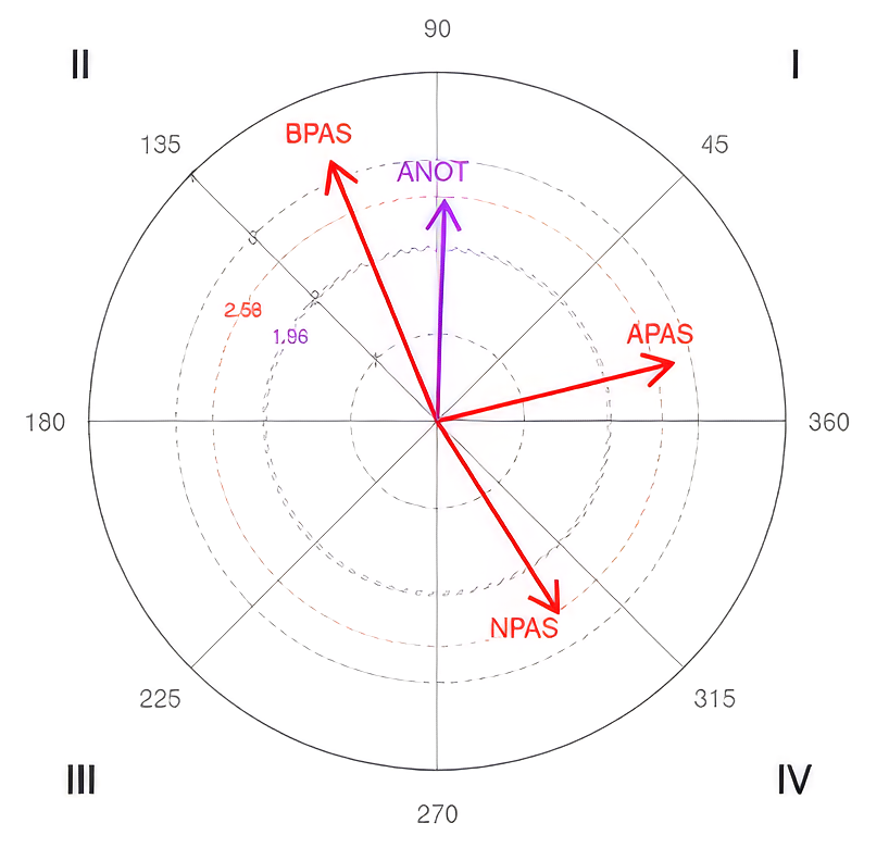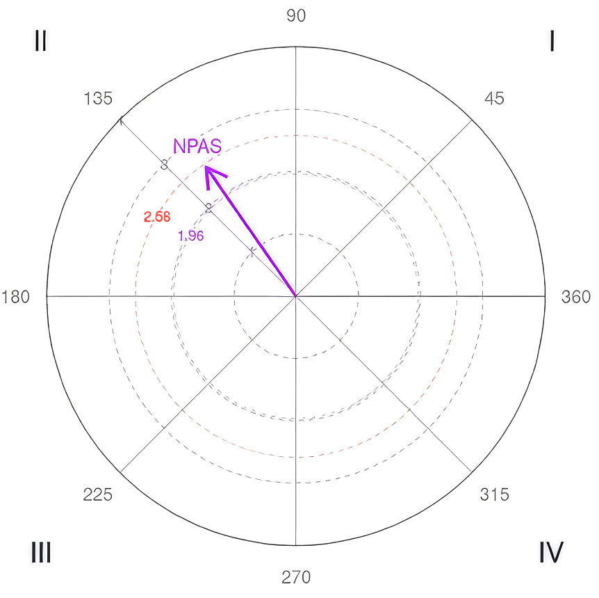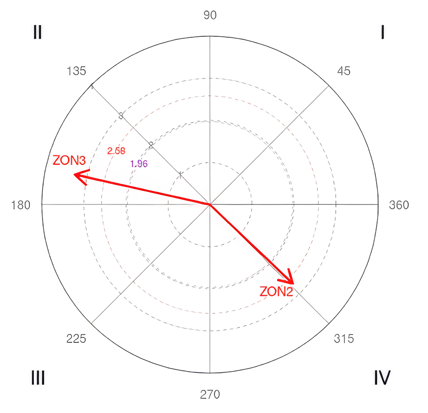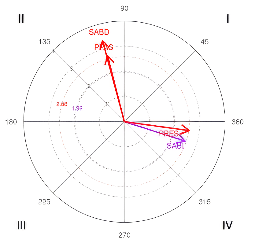 Relaciones significativas y representación gráfica de los vectores en cada uno de los cuadrantes